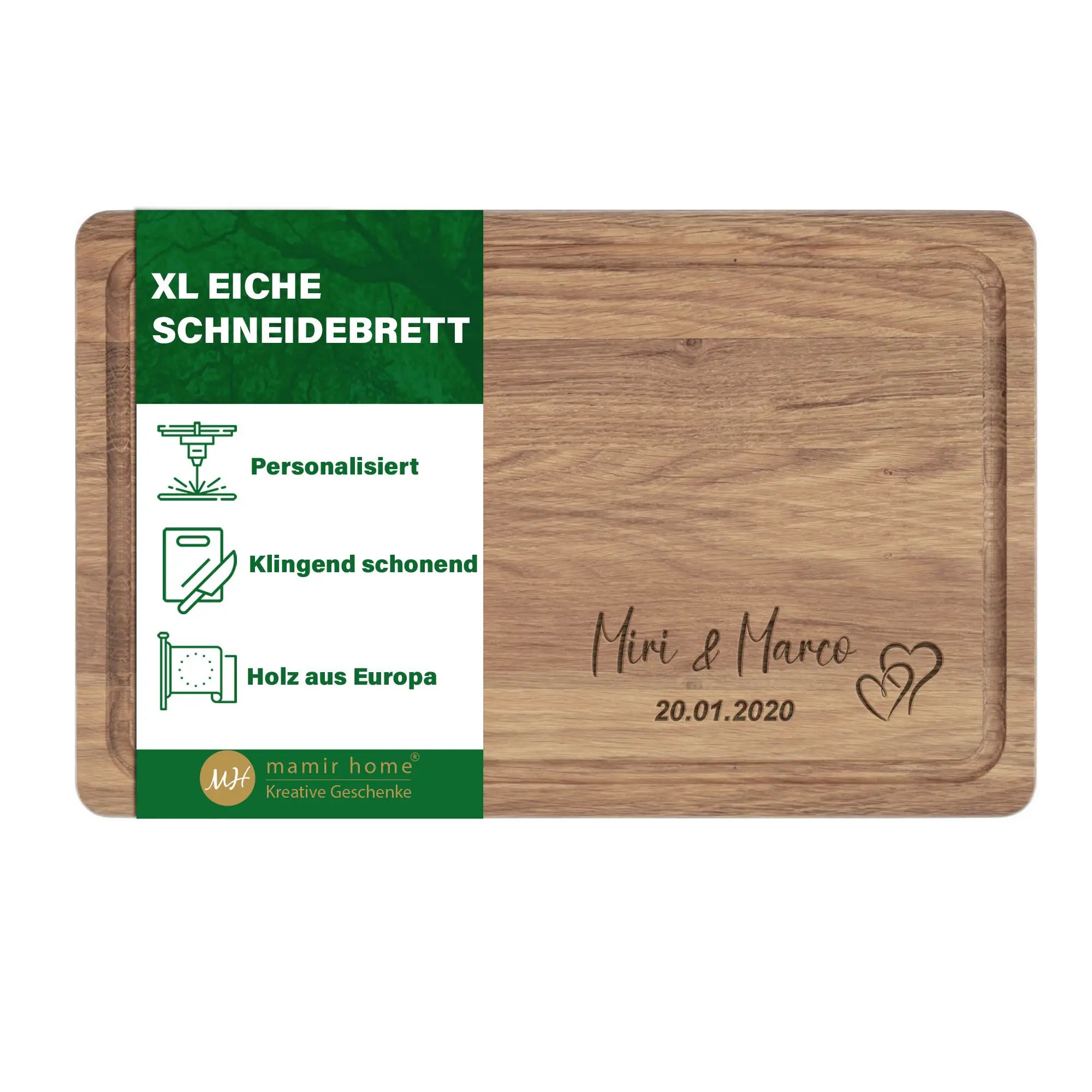 Ein Geschenk, das in Erinnerung bleibt: Dieses hochwertige Schneidebrett aus Eiche wird mit zwei Vornamen und auf Wunsch einem Datum personalisiert – perfekt für das Brautpaar, den Partner oder ein ganz besonderes Jubiläum.